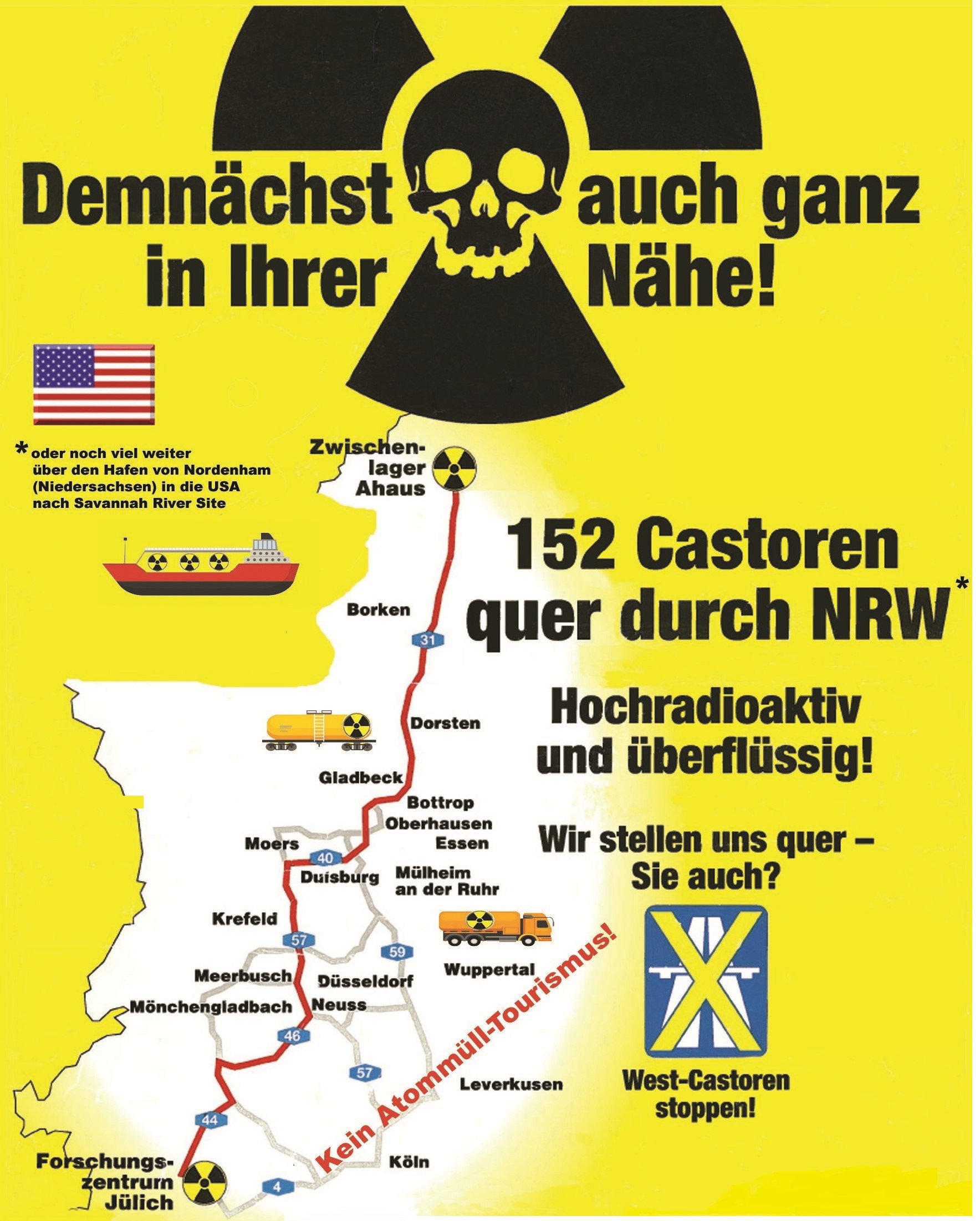 Jülich, 03.09.2018. Das Aktionsbündnis „Stop Westcastor“ lädt zur NRW Landeskonferenz der Anti-Atomkraft-Initiativen am Samstag, 8. September, in den Jülicher Kulturbahnhof (Bahnhofstraße 13) ein. Die Konferenz beginnt um 12.30 Uhr und endet gegen 16.30 Uhr. Wird 2019 ein „heißes Jahr“ für Aktivisten? Im Fokus stehen der hochradioaktive Atommüll aus Jülich und aus Garching. Rollen die Castoren vom Jülicher Forschungszentrum nach Ahaus im Münsterland? Oder werden sie in die USA verfrachtet? Wird Ahaus zum Atommülllager „der Nation“? Der Atommüll aus dem Garchinger Forschungsreaktor bei München soll laut Betreiber im nächsten Jahr über die Autobahnen rollen: quer durch Deutschland in das 700 Kilometer entfernte Zwischenlager Ahaus. Nur bis 2036 hat das Lager eine Genehmigung zum Einlagern von Atommüll. Zudem können in Ahaus keine Castoren endlagergerecht „verpackt“ werden. Quer durch NRW muss der Jülicher Atommüll, sollte er ins Münsterland gebracht werden. Mit einem „Großtransport“, begleitet von Protesten und Polizeieinsatz, ist zu rechnen. Seit Jahren fordern Umweltaktivisten ein neues Zwischenlager in Jülich – nach neuesten Erkenntnissen. Doch drei Zugmaschinen für Castor-Tieflader sind für den Abtransport der Jülicher Atomkugeln schon bestellt.